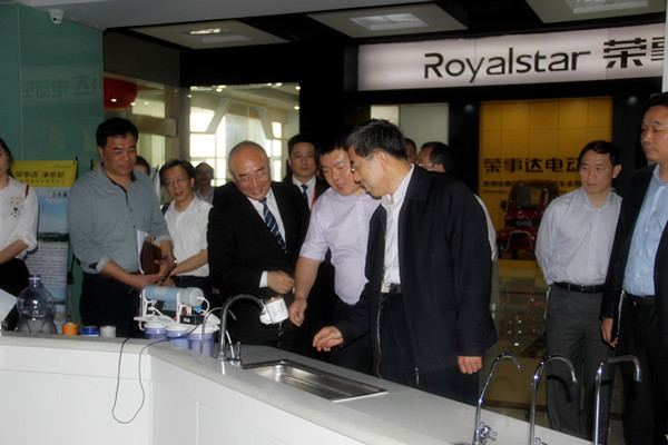 在荣事达智能家电研发中心产品展示厅,马建堂一行对荣事达水工业公司主打的净水设备表现出极大的兴趣,对荣事达突破创新、坚持走产学研相结合的道路以及多年来在净水行业内取得的成果、地位给予充分肯定。