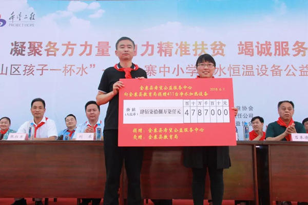 •       “六一”儿童节这一天,金寨县的孩子们收到了极有意义的礼物。共青团金寨委员会、金寨县希望公益服务中心、荣事达水工业集团共同发起的“给山区孩子一杯水”——金寨中小学净水恒温设备公益项目捐赠仪式在金寨金江实验学校落幕,至此,持续两年、覆盖全县所有中小学校的净水恒温设备公益项目画上圆满句号。该公益善举得到了社会各界爱心人士的积极参与,受到学生、学校、家长们的一致好评,被全国文明办评为“全国百佳公益项目”。
