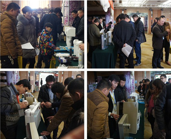 华北大区营销总监胡锋在发布会上重点讲解了新款产品的技术亮点和独特功能。2016款新品融“精细化”、“个性化”、“便捷化”、“人性化”、“安全化”五大价值于一体,彰显了卓越品质。具备增压、自吸功能的厨下纯水机R8,一体式龙头设计、可厨上厨下随心安置的箱体LED纯水机,三秒即热、即制即饮的速热饮水机等2016款新品在发布会首次亮相,时尚美观、功能完备的新款产品纷纷受到客户瞩目。
