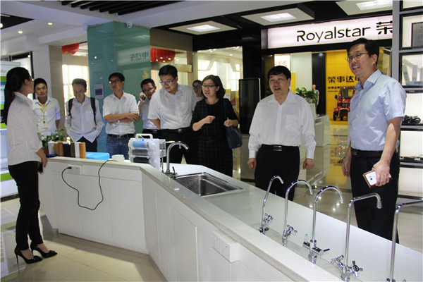 在荣事达智能家电研发中心产品展示厅,领导们饶有兴趣地参观了荣事达净水机展区,总经理支新郁讲解了净水机产品类型及所运用的反渗透过滤技术,并介绍了公司为唐山世界园艺博览会、三亚凤凰国际机场等场所安装的商用净水设备。当得知荣事达与印度德里公共事务委员会组织就新德里城区安装自动售水设备项目达成合作意向,张博士一行人员对公司在净水工程领域取得的突破表示了衷心的祝贺。
