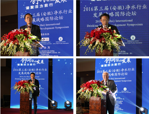 中国净水行业专家网王占生教授、美国水质协会中国事务总监丁鹏先生、安徽省净水行业协会王六一会长上台致辞,欢迎广大与会专家、学者、企业家解析国内外净水市场发展现状、特点,分享企业创新发展的理念、思路,研讨新形势下净水行业发展内容、发展方向、发展趋势,为净水行业的快速、健康发展开阔思路。