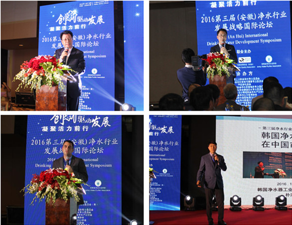 论坛期间,美国水质协会市场总监Mr.BrianGeegan,韩国净水器工业协会中国分部部长朴济成,美国国际管道协会水处理总监TINA Donda,台湾沛毅工业股份有限公司副总裁赖明斌等以及来自北京、上海、浙江、广东、安徽等地的净水企业分别就净水行业大数据、智能制造、知识产权、互联网+等主题进行了深入研讨。