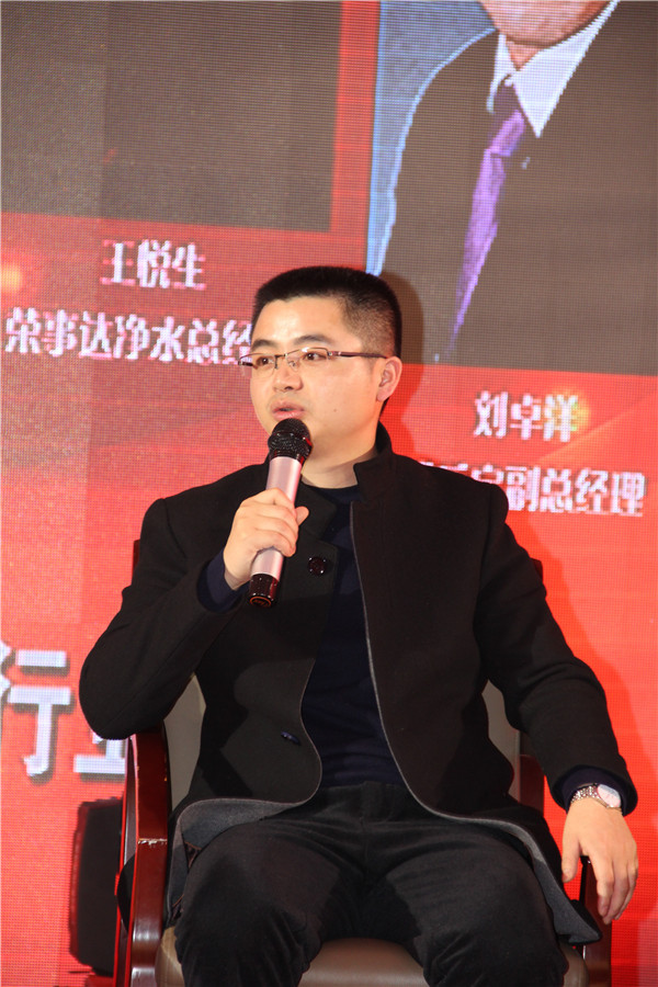 颁奖盛典结束后,进入至关重要的领袖峰会环节。行业大佬齐聚一堂,共谋净水事业大发展。荣事达净水总经理王悦生、海尔净水副总经理陈鹏、安吉尔副总裁沈钧等知名企业代表围绕“净水企业如何应对行业大洗牌”的论坛主题,进行深入的交流和探讨,对行业的未来发展趋势做出指导。王悦生论及产品这个基本点,提出应立足用户体验对产品进行创新升级,重视物联网发展,推动产品结构变革。会后,王悦生接受了新浪等多家媒体的专访。