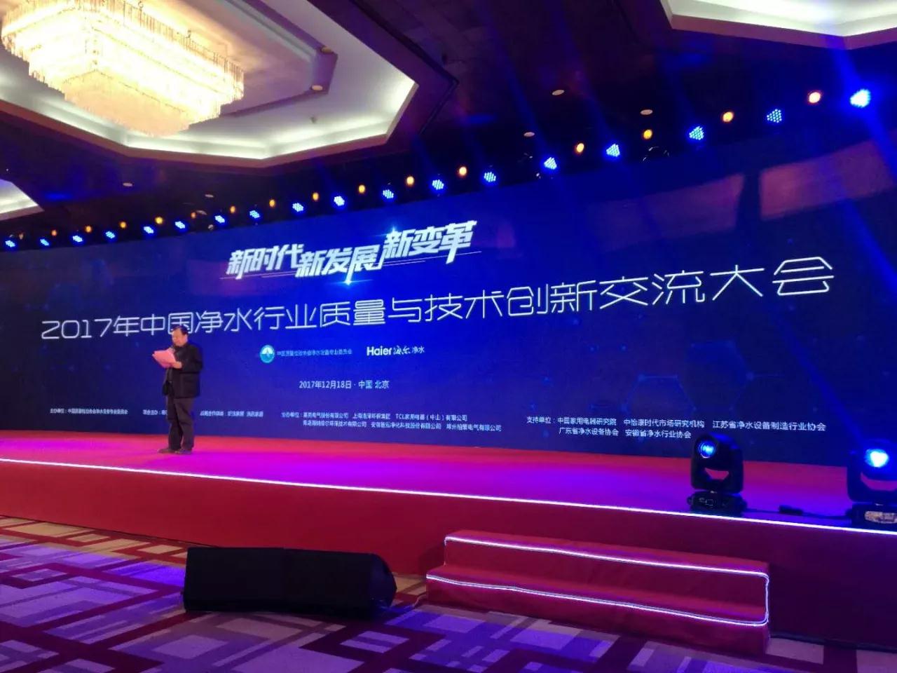 •        12月18日,2017年中国净水行业发展年会暨质量与技术创新交流大会及2017全国两净行业金鼎奖颁奖盛典在北京喜来登长城饭店盛大举行。本次大会由新浪家居、中国质量检验协会净水设备专业委员会联合主办,得到国家工信部、中国家用电器研究院、中国质量认证中心、中怡康等机构大力支持。荣事达凭强劲实力与卓越品牌力量荣膺“2017年全国净水行业影响力品牌”奖,荣事达水工业公司市场总监管仲受邀出席。