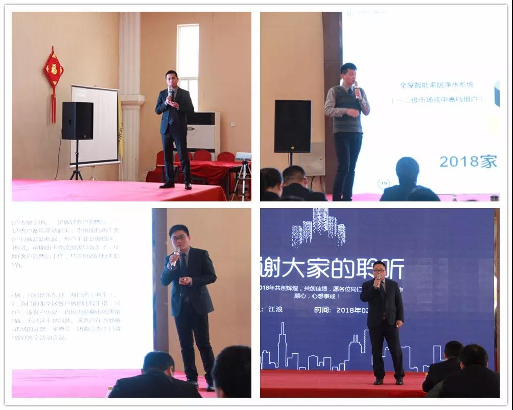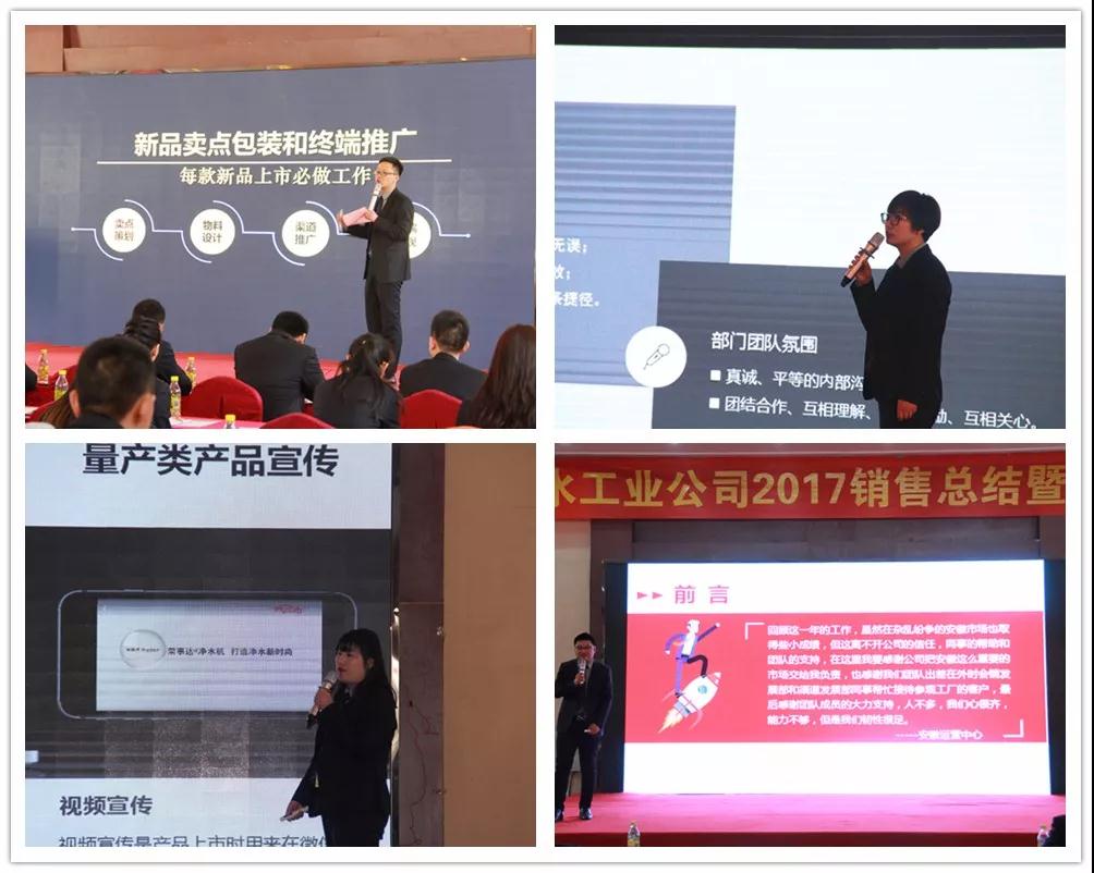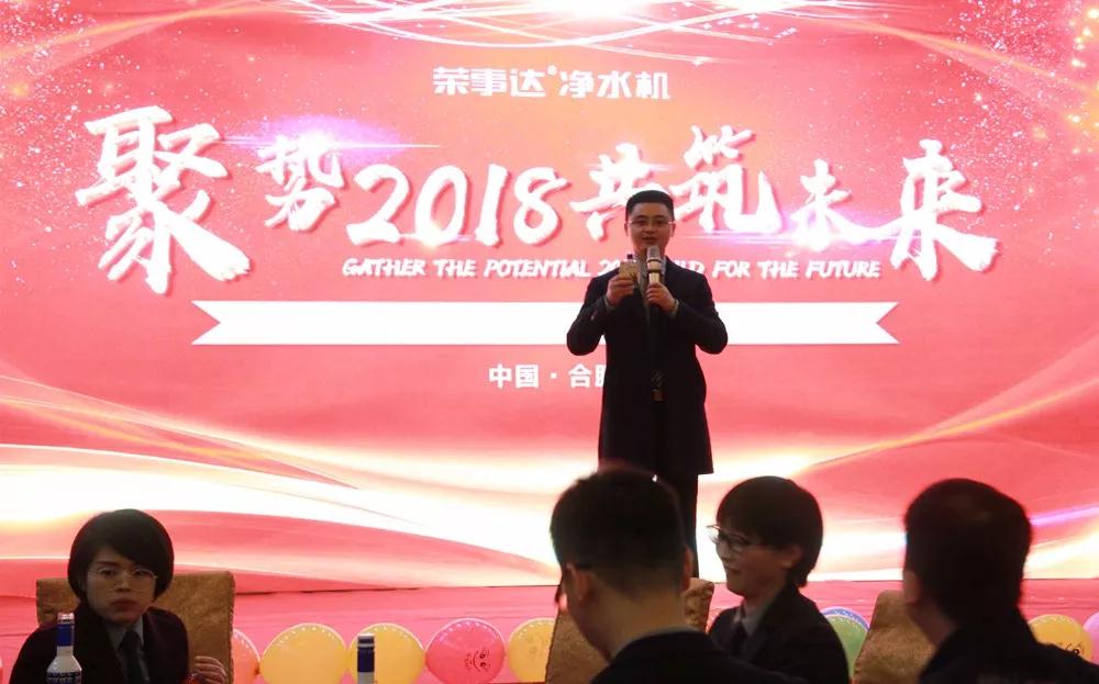 荣事达水工业公司总经理王悦生作大会开场致辞。王总回顾了公司在2017年取得的傲人成果与辉煌业绩,提出2018年战略发展规划和目标,并要求围绕新目标,开好局,起好步,以实际行动落实新规划,谋求新发展,创造新辉煌。