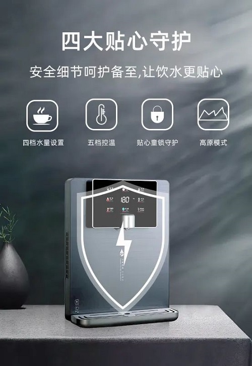 四大贴心守护,让饮水更贴心。四档水量设置,定量取水,无需等待;五档控温,专温专饮,给您最适宜的温度,满足多种需求;贴心童锁守护,童锁键预防宝宝误触,避免安全隐患导致烫伤,安全细节呵护备至;内置高原模式,适应各类海拔高度,充分考虑高海拔地区家庭饮水需要。