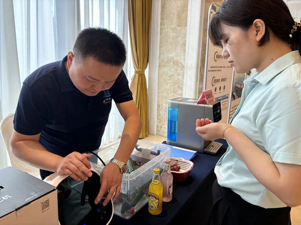 与会嘉宾纷纷驻足,亲自体验了荣事达冷热一体机、大通量净水机以及富氢水机等高科技产品。特别是当大家品尝到经荣事达食材净化机杀菌处理后的水果后,都纷纷表示口感绝佳,与仅用清水清洗的水果相比,更加清爽可口。