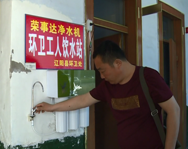 进入夏季后,天气越来越热,对于在马路上工作的环卫工人来说饮水成了一大难题。大多环卫工人每天早上从家带一两瓶水,喝完后就接自来水管的生水喝,有时进路边的店铺要水还会被拒绝。为了解决环卫工人饮水这一难题,五月开始,辽宁省辽阳地区的荣事达净水机代理商许广彦在辽阳县为环卫工人捐赠十台净水机,并在县内主要街道设立了荣事达环卫工人饮水站,供环卫工人免费饮水。